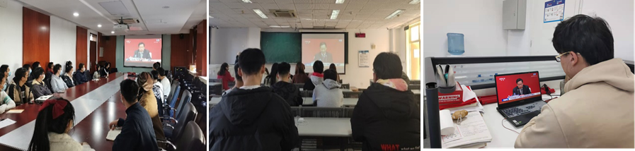 11 月 12 日上午,金沙2004路线js5党委组织师生党员通过电视、网络等形式积极收听收看党的十九届六中全会新闻发布会现场直播,学习党的十九届六中全会精神。